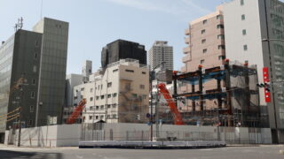 新開地は多聞通/大開通と湊町線の交差点西角にあった三菱UFJ銀行の入った菱明ビルの解体工事が行われており、土地を取得したのは和田興産という事は判明していましたが、建て替え後にはどのような建物が建設されるのかは定かではありませんでした。