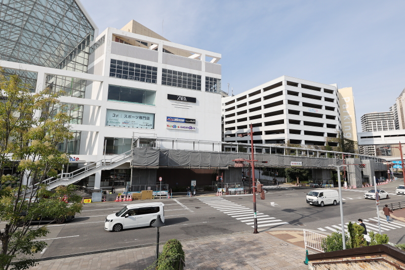 umie・North Mall2階へと連絡する接合部分の仕上げも進んでいます。