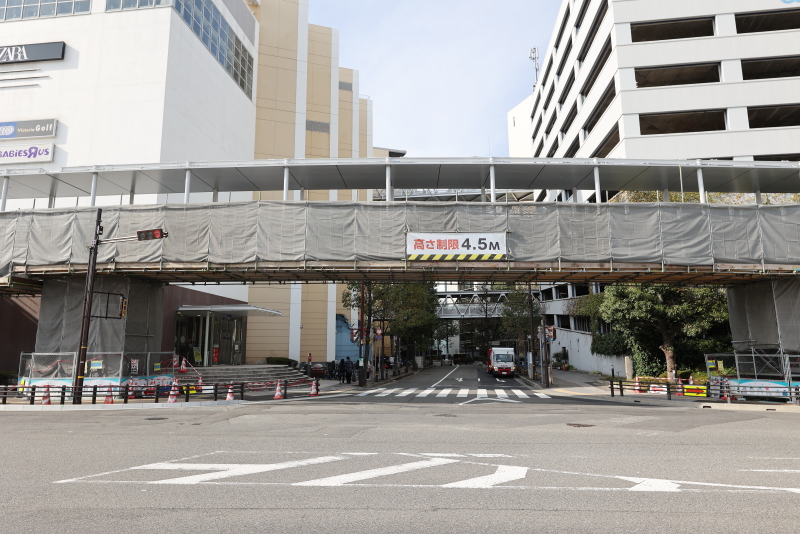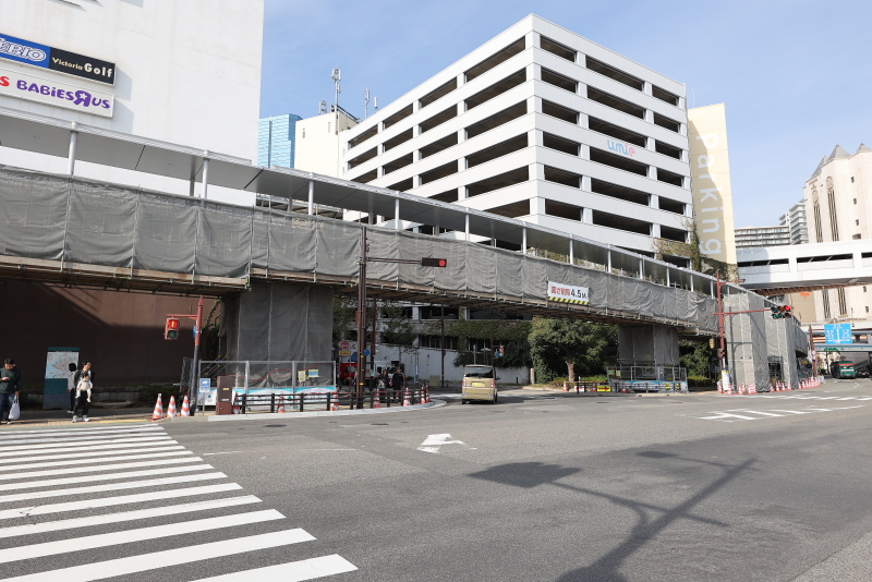 ハーバーロードの西側歩道上空に架橋されているハーバーランド東(弁天)デッキは完成時期が来年3月に延期されています。完成形がかなり見えている状況ではありますが、まだ供用開始には5カ月近く掛かる模様です。