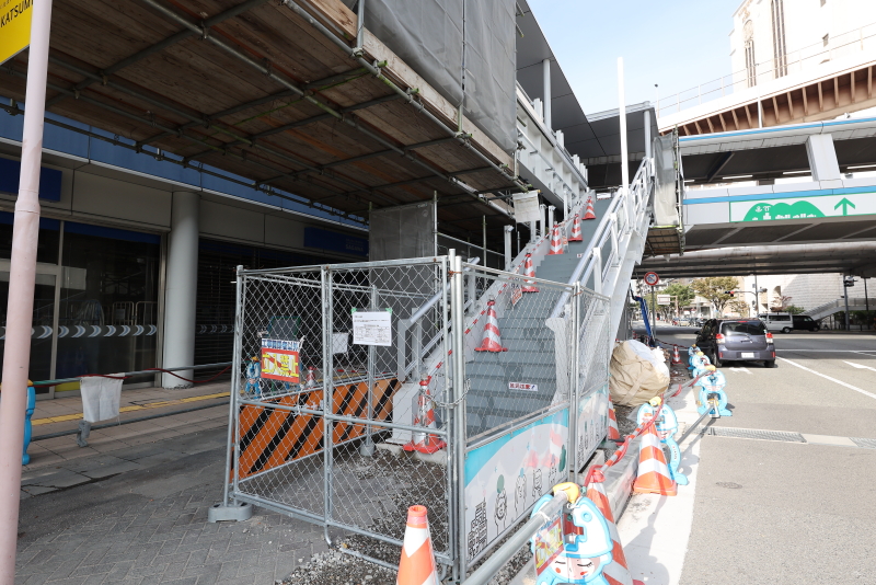 弁天交差点部分の階段も手摺の取り付け工事が行われています。