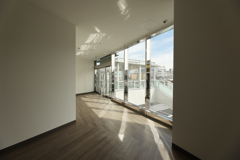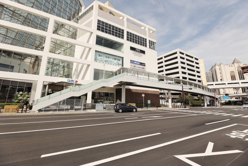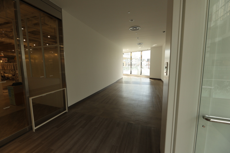umieノースモールとの連絡部分です。建物2階の外壁をくりぬいて新たなエントランスが誕生しました。