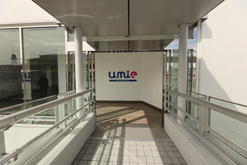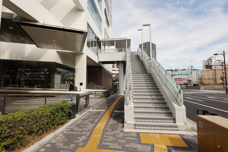 デッキ上の階段とumieへの渡り廊下との交錯部分です。