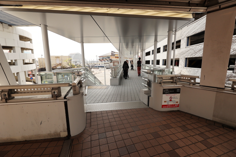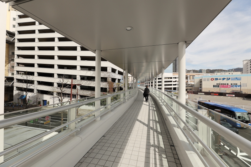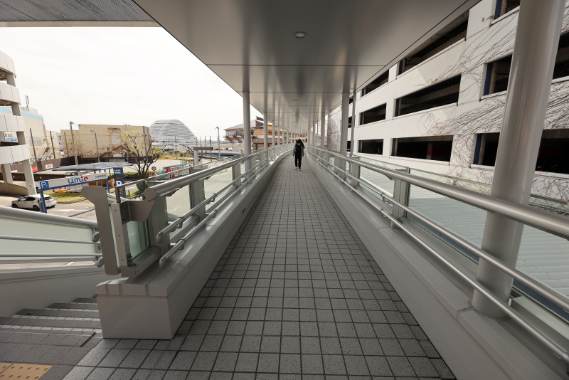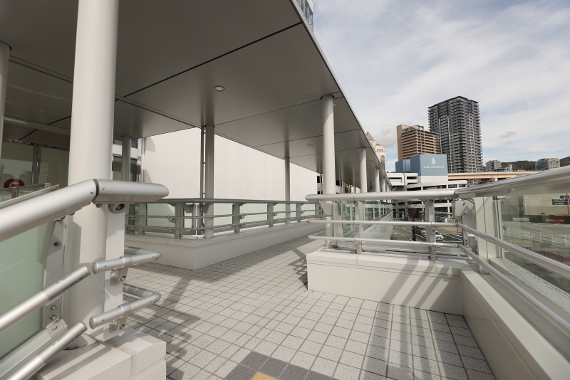 ゆったりとカーブする新デッキ。西元町からバリアフリーでumieやモザイクへのアクセスが可能となりました。