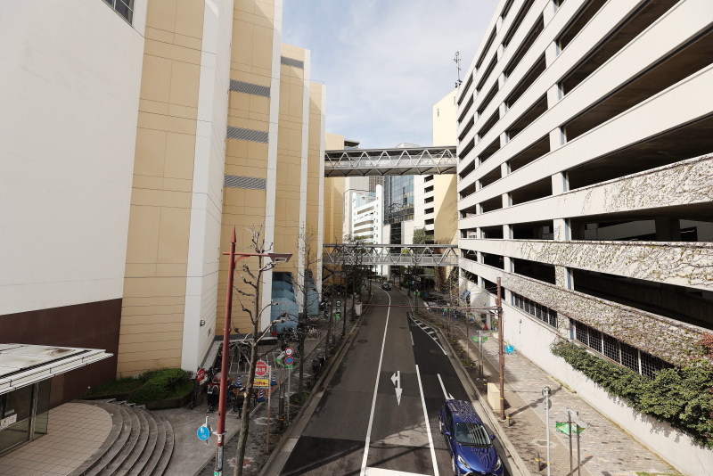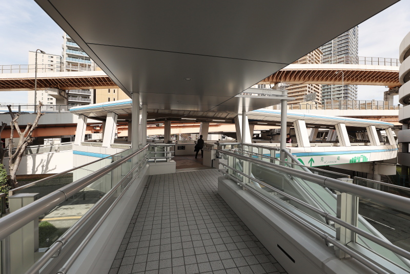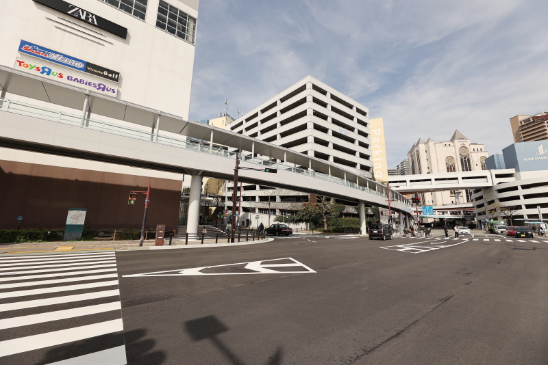 既存の弁天交差点デッキとの接続エリアです。新旧のギャップが結構激しいです。