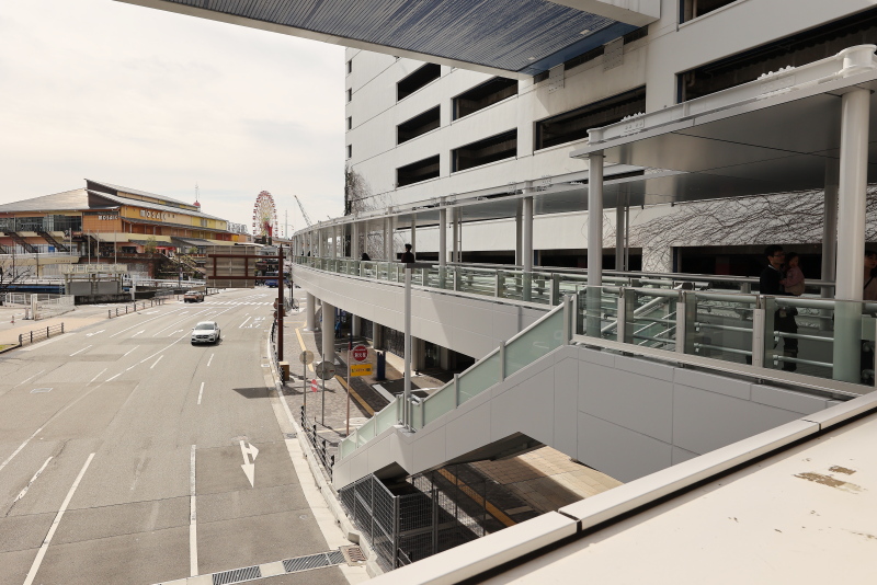 従ってグローバルワークエントランスから新設通路を介してのデッキへのアクセスとなっています。