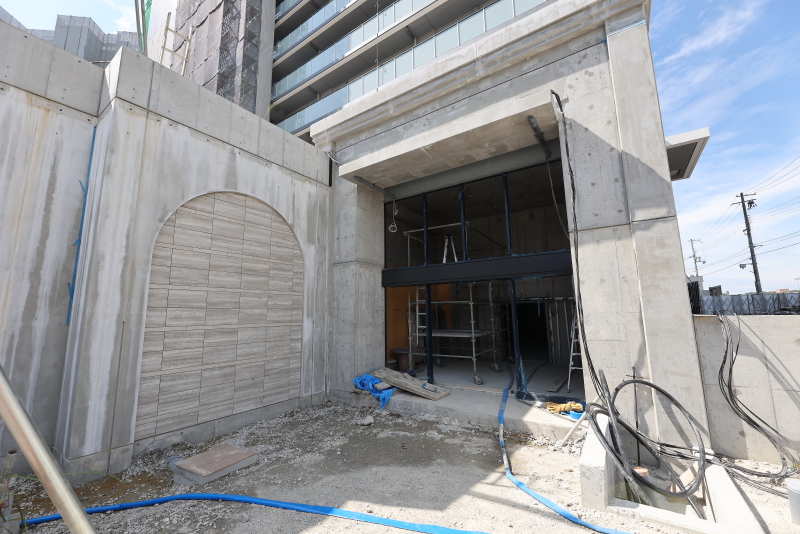 1階のメインエントランス周りの様子です。まだコンクリート剥き出しの状態です。