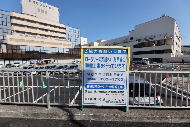 この課題点を解消する為、名谷センタービル南側の駐車場を改良し、ここに一般車が活用できるロータリーを整備する事業が進行中です。