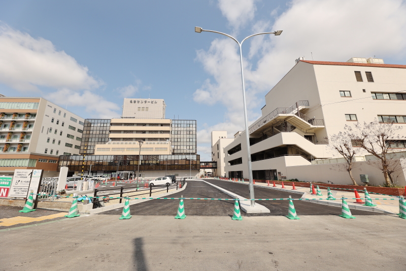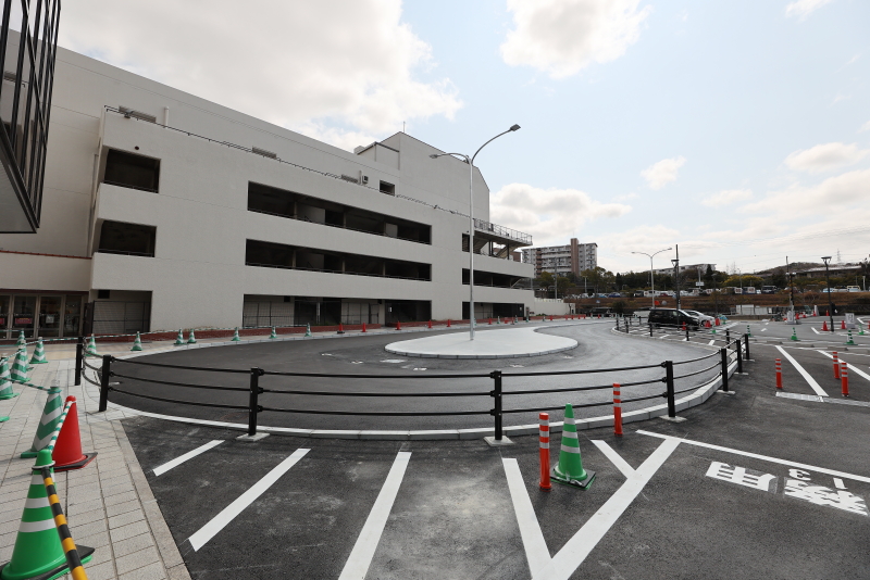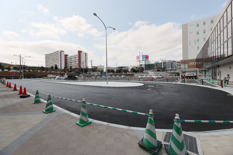 新ロータリーには、約7台分の停車スペースが備わっています。このロータリーの新設の為、名谷環状線との交差点からロータリーまでの間の道路の相互通行化を実現しました。ロータリーの供用開始は3月30日からを予定しています。