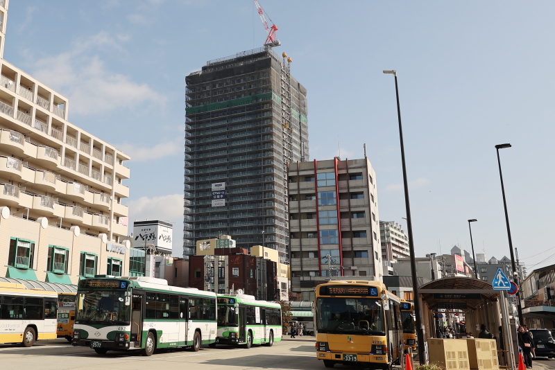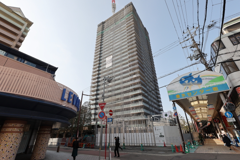 リノベーション神戸・垂水中央東地区第一種市街地再開発事業 プラウドタワー神戸垂水 超高層棟の上棟と周囲の店舗棟の整備も進行