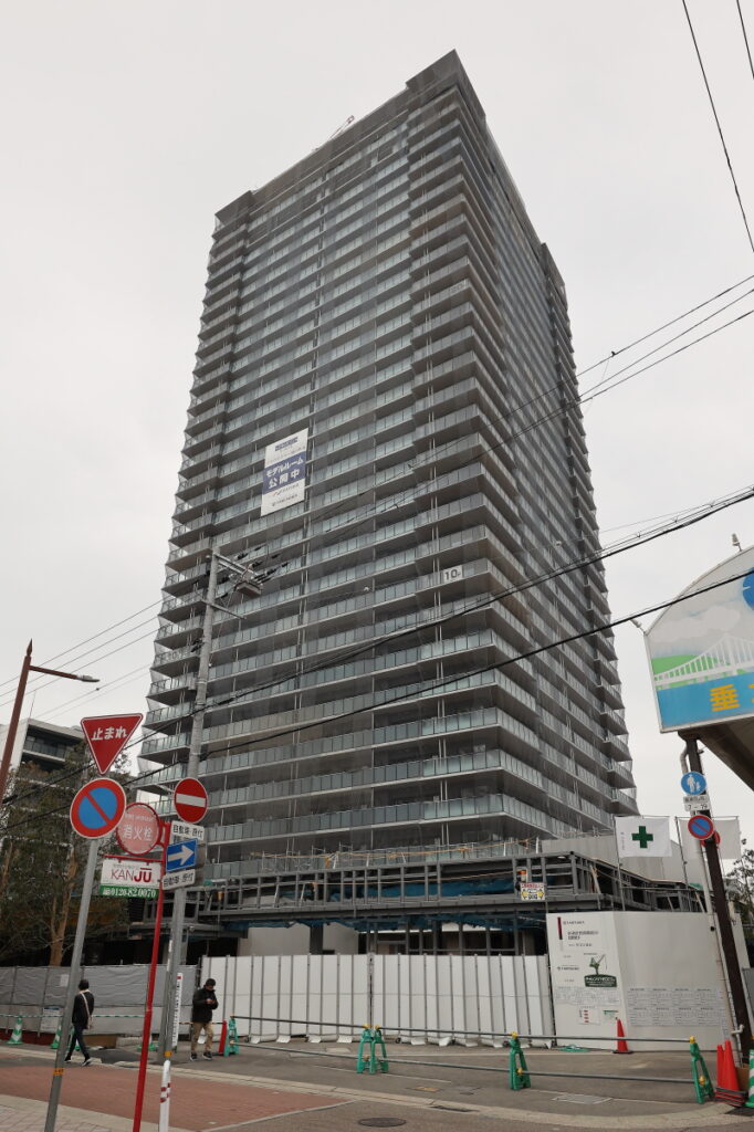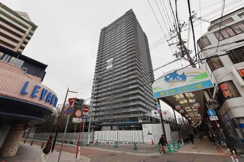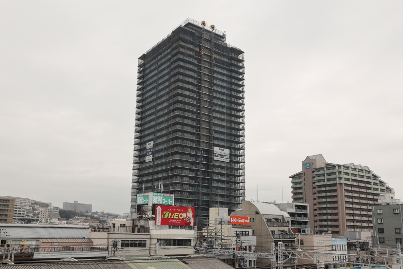 リノベーション神戸・垂水中央東地区第一種市街地再開発事業 プラウドタワー神戸垂水 外観が完成 低層店舗棟の構築も進む