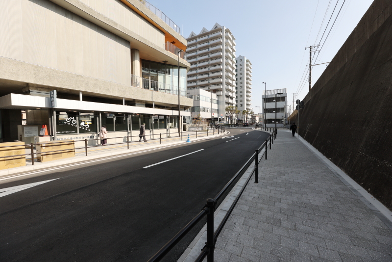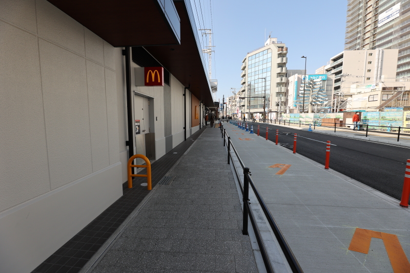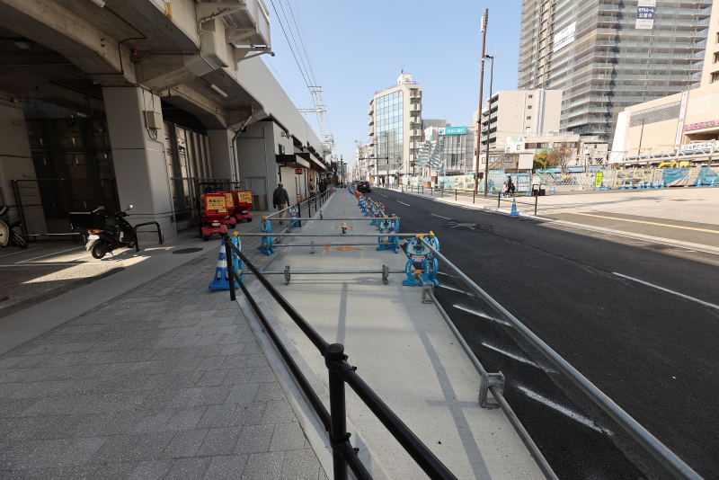同時に高架に沿って歩道もしっかりと整備され、歩行者空間が確保されて、安全性の向上と動線の改良も行われました。