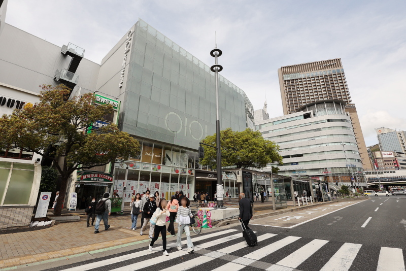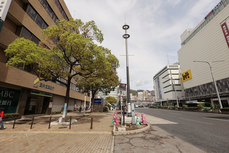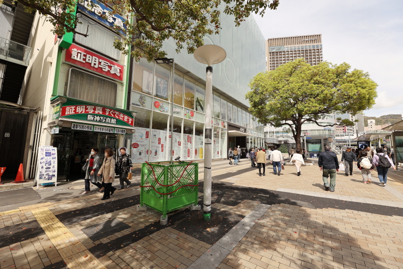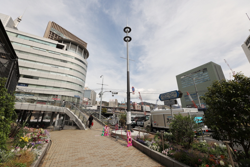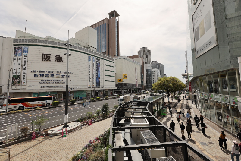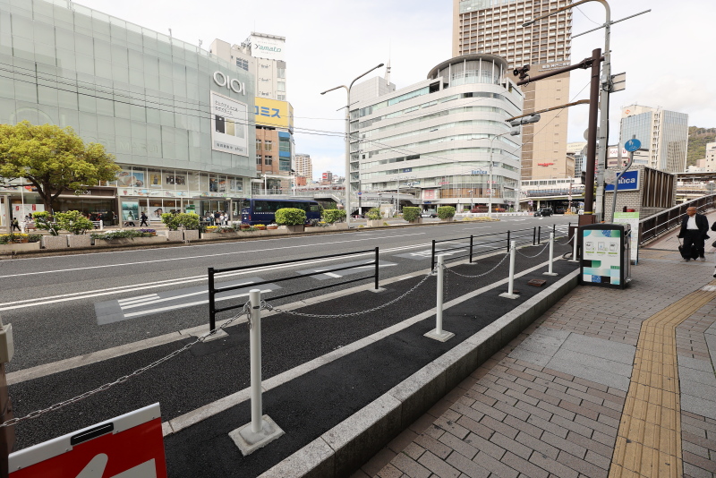 整備の進む西側歩道に対し、東側は交差点の車道に面してあった植栽帯が撤去されて歩道の一部となった以外は今のところ大きな変化はありません。JR新駅ビルの完成タイミングで何らかの整備が進められる事でしょう。5年後、三宮は全く違う街になっています。