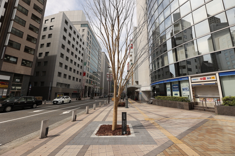 整備エリアの南端にある国際会館前交差点の西角にケヤキの木が植樹されました。