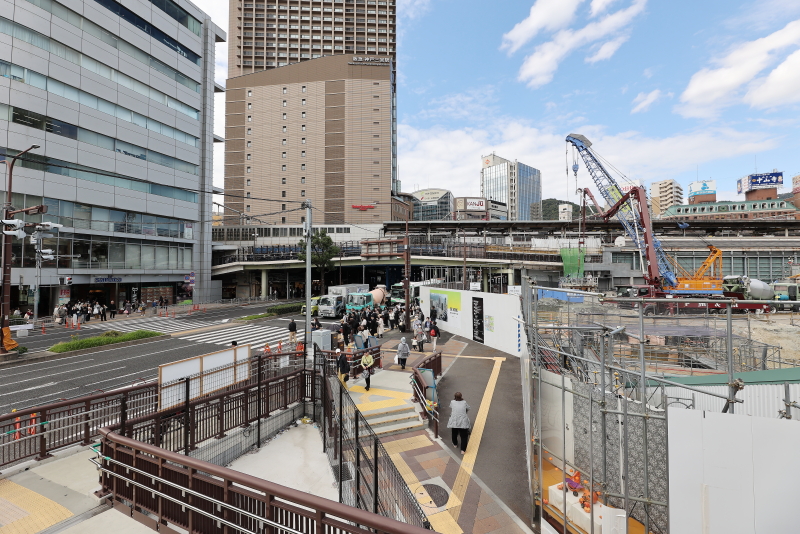 この工事開始に伴い、駅ビル側のフラワーロード沿いの歩道が、11月17日頃より閉鎖されます。