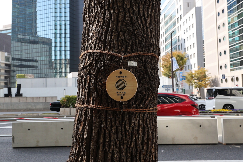 最近、都心エリア内の街路樹に「神戸木陰プロジェクト」の丸板が幹に取り付けられているのをよく目にします。