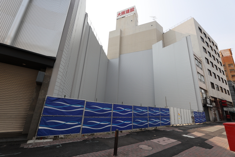 解体が終わった後、まずはこの土地を両側から囲んでいるビルの外壁補修が行われました。