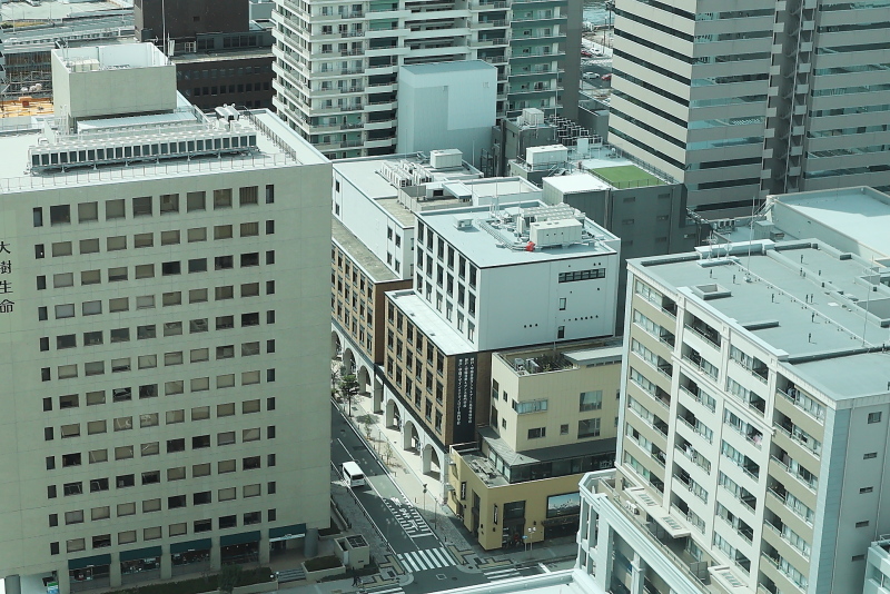 2棟の建物はデザインを共通としていますが、栄町通の兵庫県信用組合の本部ビルのように増築棟と既存棟を完全に繋ぐ形で構造を一体化した訳ではありません。