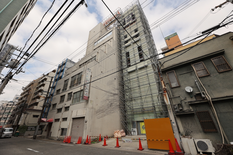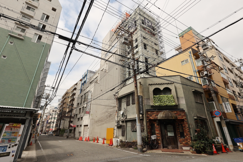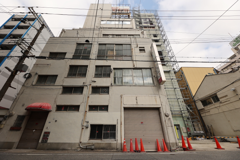 周辺には小型の建物が多い中、一際背の高いビルでした。店舗や事務所、一部住宅の複合用途の建物ですが、老朽化により更地化されます。土地の敷地面積は約700平方メートル。