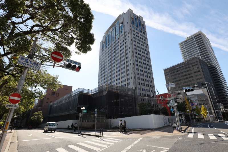 兵庫県庁舎再整備地区内に生田警察署の仮設庁舎建設中 周辺の民間提案予定エリアの先行活用を促進したい