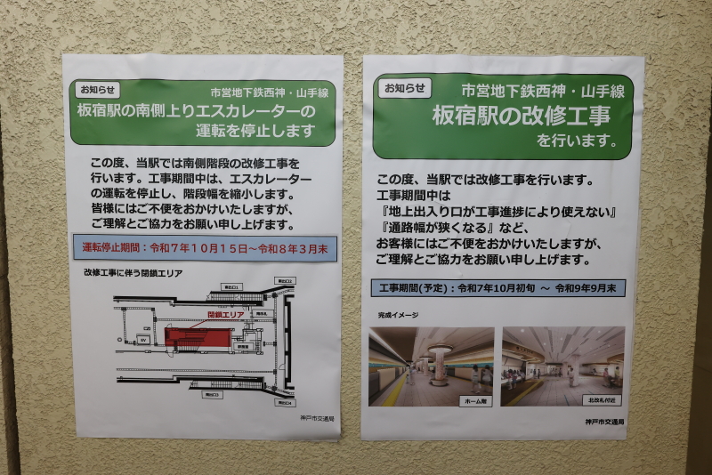 神戸市は市営地下鉄西神・山手線の主要駅が老朽化している事からこれらのリニューアルを進めていますが、既に三宮、新長田、名谷、西神中央の改修工事を終えており、以前より計画していた板宿駅についてもようやくリニューアルに着手しました。
