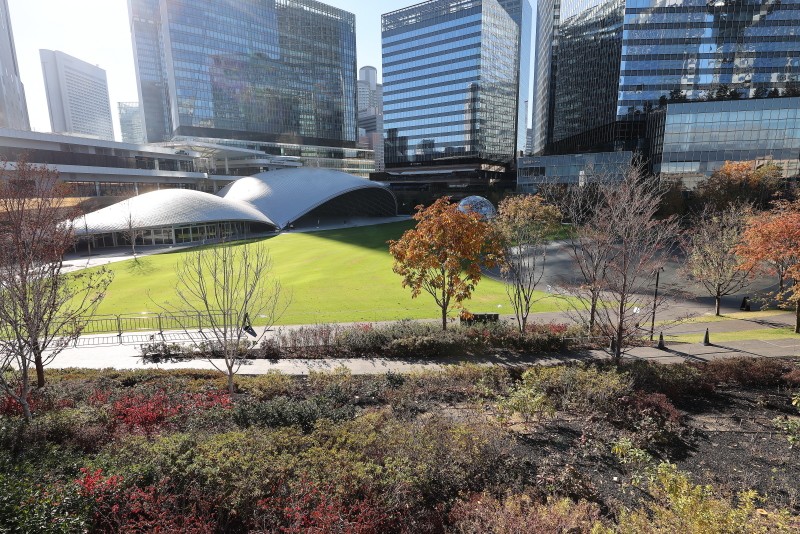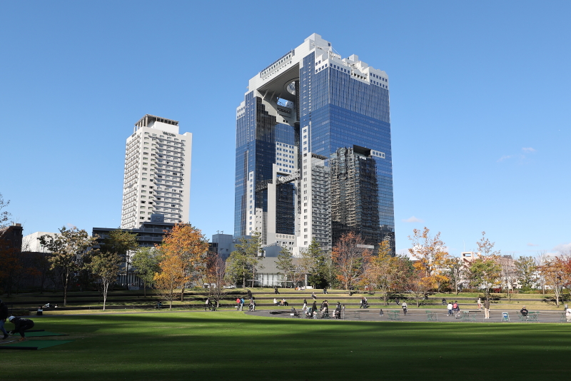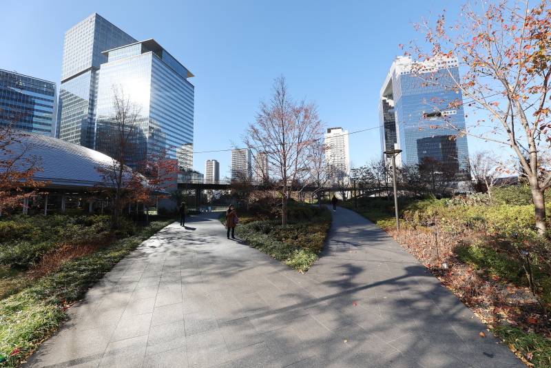 この都市公園は世界最大級のターミナル駅前に広がる非常に稀有な存在です。東京駅前の丸の内から皇居に渡る景観にも匹敵する完成度の高さが際立ちます。この敷地に超高層ビルを林立させる事もできたと思いますが、既に低層部に入れる商業機能は一連の大型再開発と流通業界の変遷によって、オーバーストア感が高まっており、結果的にも公園とした事は英断だったと思われます。