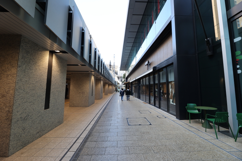JPタワー大阪とJR大阪駅との間に整備された小径。かつて高架下にあった商業施設は、縮小した分、KITTE大阪やイノゲート大阪のバルチカ03がその機能を代替しました。