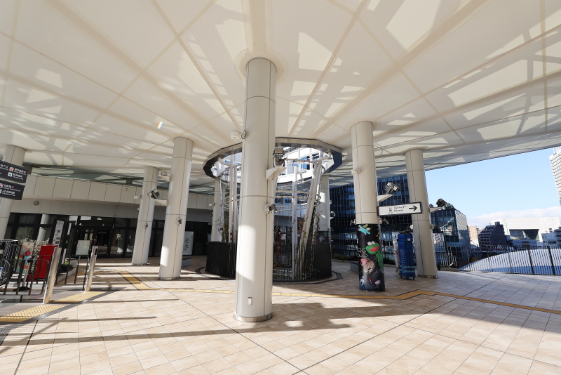 交通結節点としての機能も果たしており、タクシー乗降場や大型バス駐車場を備え、万博開催期間にはシャトルバスも発着していました。