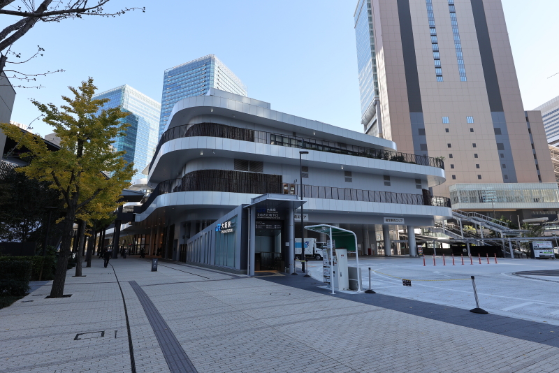 隣接する広大な都市公園「グラングリーン大阪」の一部となっており、テナントは高級志向に寄りすぎず、日常使いできる店舗を揃え、仕事帰りの食事や、公園遊びの合間の軽食など、幅広い層をターゲットにできる駅前の利便性の高い施設として重宝されているものと思われます。JR三ノ宮駅の「人の広場」に整備される低層店舗棟も似たような機能や役割を担うのではないかと推測しています。