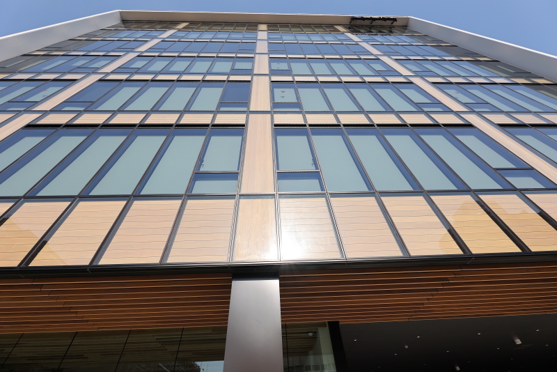 壁や天井等にも兵庫県産の木材を多用しており、今時のトレンドにマッチした新本社ビルです。