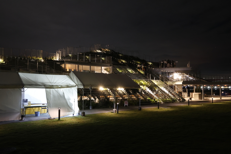 想像していた照明演出とは異なっていましたが、夜間でも登り降りしやすいように足元を中心として照らす照明が階段に沿って煌々と輝きます。