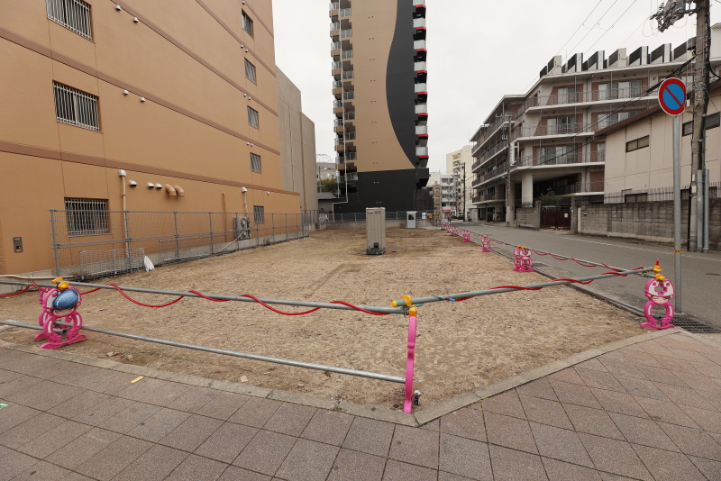 既に更地化が完了していますが、まだ建築計画のお知らせは掲示されていません。