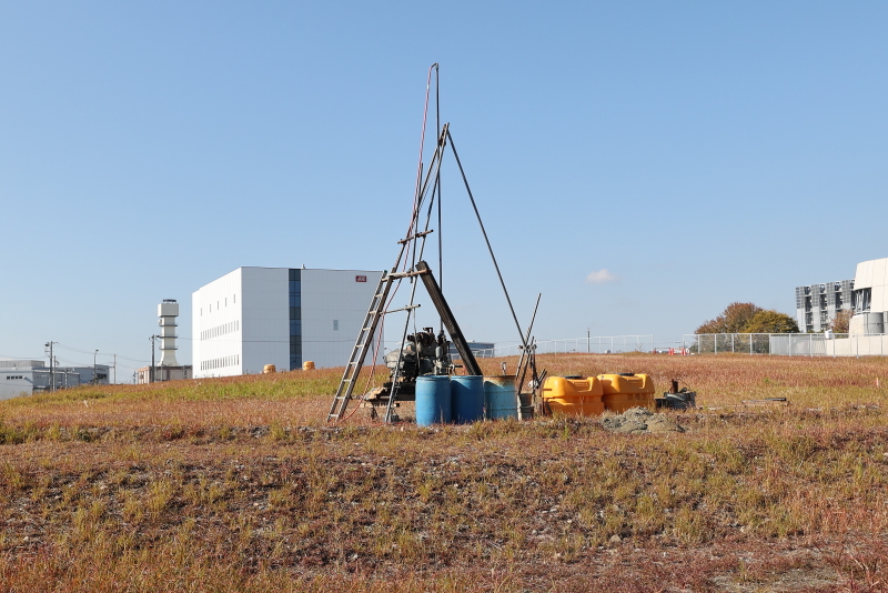 建設事務所の前では地質ボーリング調査も行われていました。2期棟のJBX2を建設する為の準備調査かと思われます。2期棟の着工はあくまでも1期棟での研究成果次第というスタンスだったかと思いますが、成功を想定に2期棟建設を進める方針なのでしょうか。