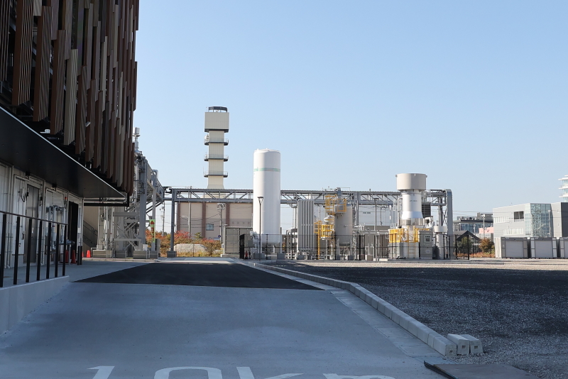 このバイオプロセス研究所は、二酸化炭素を原料に、微生物(水素酸化細菌)の力を使ってプラスチック原料などの有用物質を合成する「ガス発酵」の実証を行う施設です。近隣では、ITやAIを駆使して「物質生産能力を極限まで高めた微生物(スマートセル)」をデザインする技術で世界トップクラスの神戸大学も「バイオものづくり共創拠点」を開設したばかりですが、日揮の研究所も神大と強く結びついています。