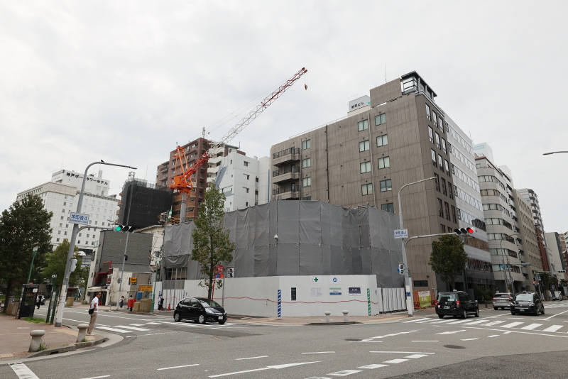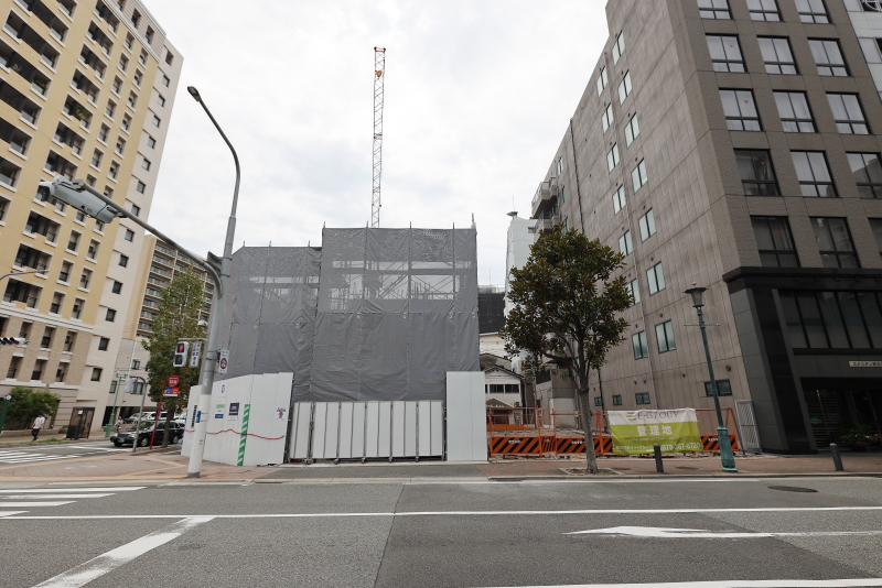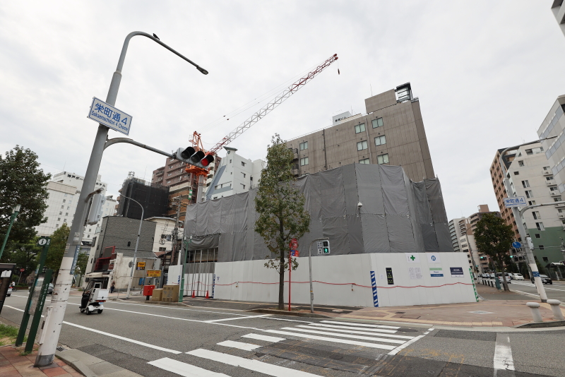 栄町通4丁目交差点の南角地で建設されている(仮称)神戸市中央区栄町通4丁目計画。サムティが地上15階建の賃貸マンションを計画しています。何年もの紆余曲折を経て、ようやく着工に至りました。