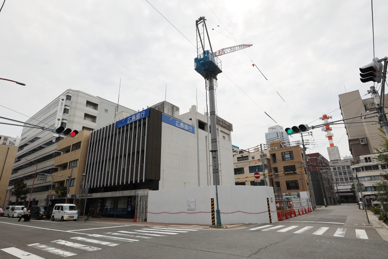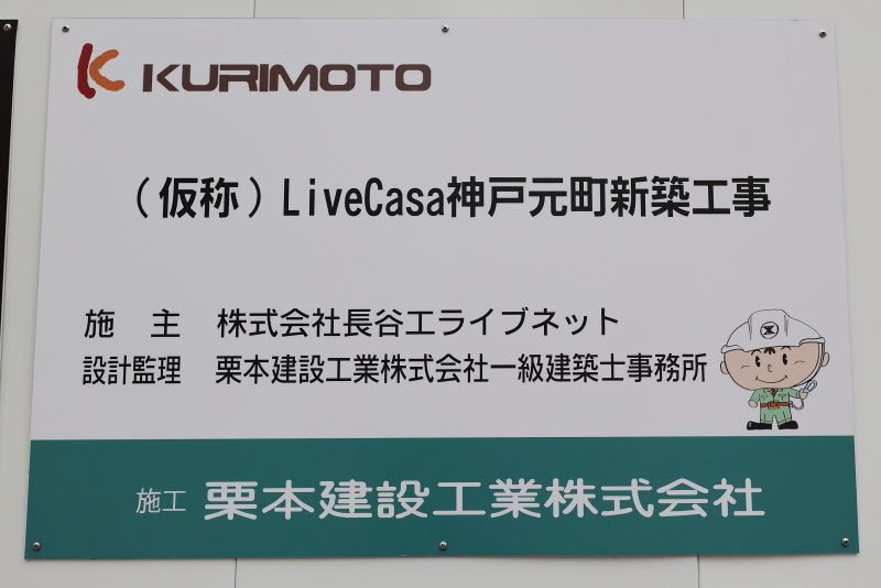 栄町通4丁目から少し東に進むと、広島銀行支店ビル横で新たに建築中の建物が現れます。(仮称)LiveCasa神戸元町新築工事です。