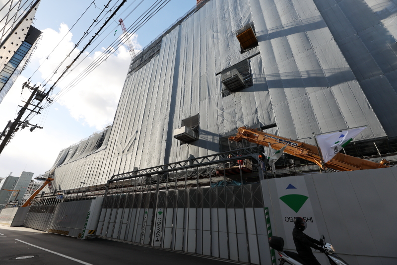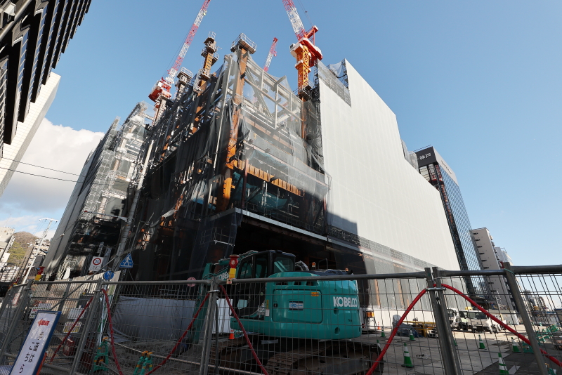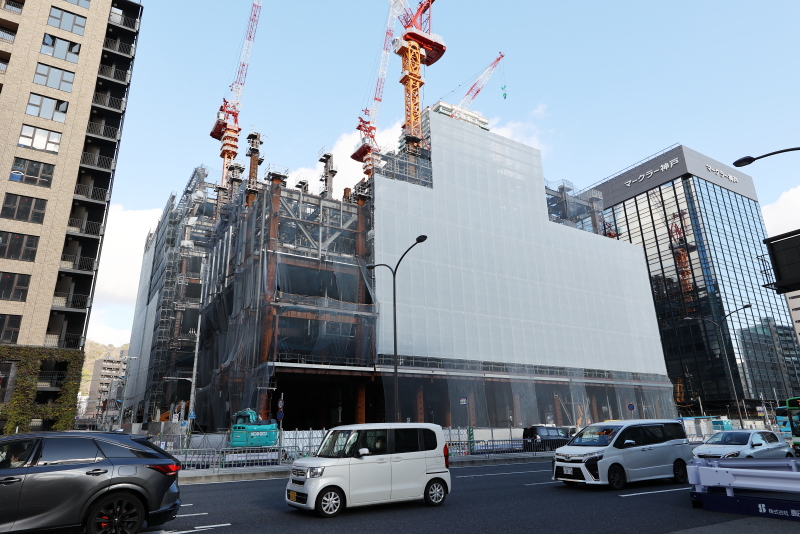 西日本最大級のバスタ神戸三宮を中心として、音楽ホール、図書館、店舗、オフィス、ホテル、駐車場から構成される神戸三宮ツインゲートの1期棟の建設工事が順調に進行しています。