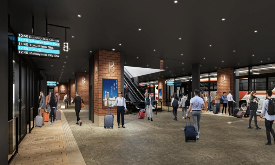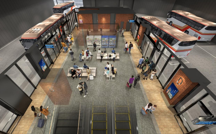 バス乗降場は黒を基調としたシックな雰囲気に柱には煉瓦をあしらい、モダンさとレトロ感を組み合わせたNY SOHOのようなスマイルが想定されているようです。