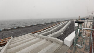 北工区と南工区でまだ工事の進捗に差はありますが、南工区の高さも増しており、高さ60mに達する基壇部の全体上棟も近づきつつあります。