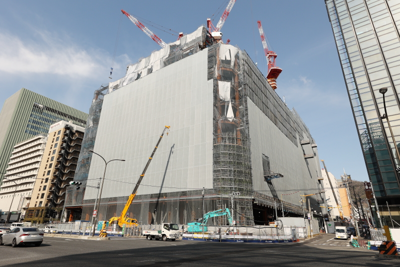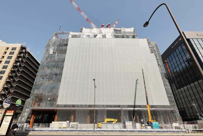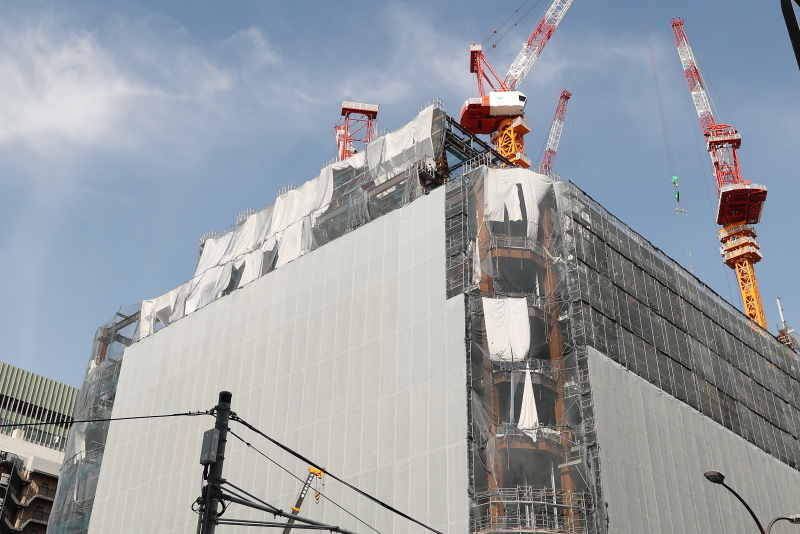 北面については外壁の取り付けも開始されており、最上部は屋上庭園の為に10階よりも更に遥かに高い想定となっています。