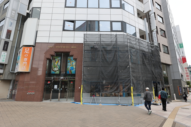 国際会館前交差点の南角の摩耶ビル1階はアシックスが退店した後に空テナントでしたが、内装工事が進行しています。