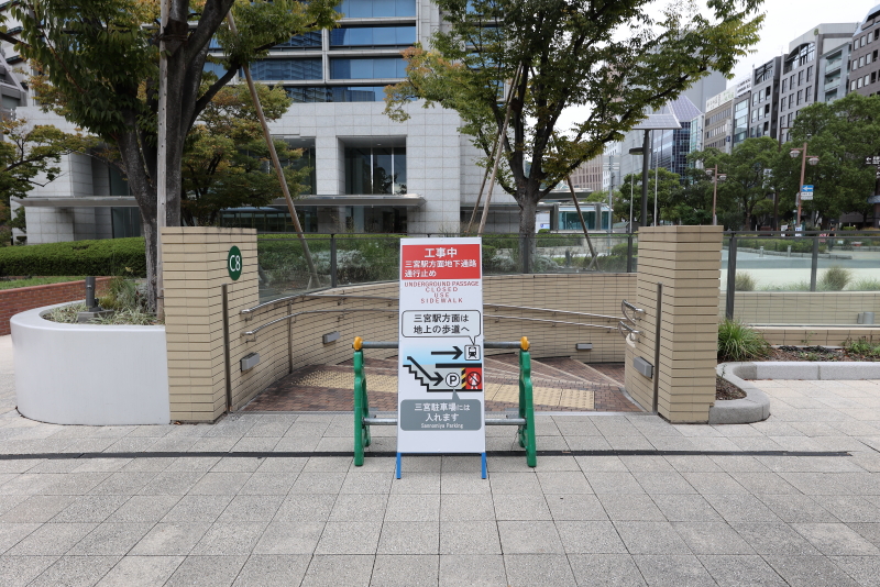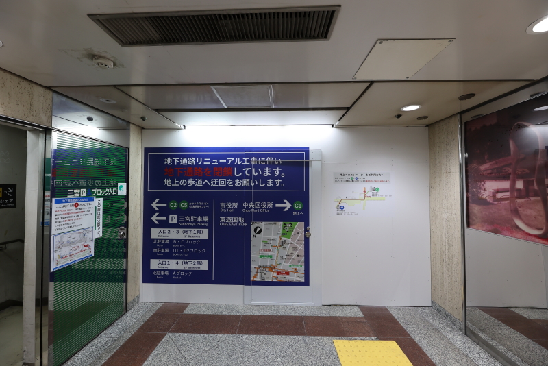 東遊園地内の地下通路への入口も閉鎖されています。地下通路はリニューアル工事完了後、先行供用の開始もあり得るでしょう。