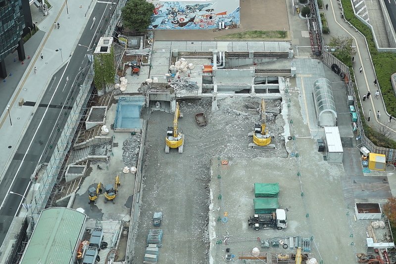 地下階の躯体解体が行われています。来春までを掛けて躯体を撤去し、その後は更に地中の基礎解体を開始するタイミングが本格着工となります。