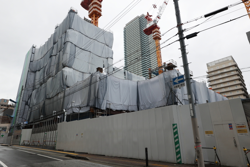雲井通6丁目北地区再開発が年度内の都市計画決定へ 5丁目は4機のタワークレーンで鉄骨建方進行中