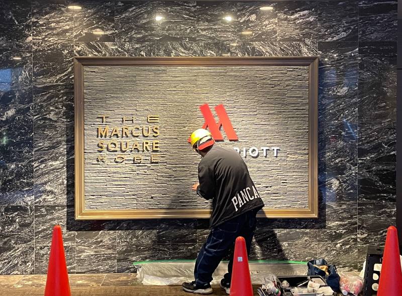 遂にマリオットのロゴがバンケットの「ザ マーカス・スクエア神戸」の入口に登場。