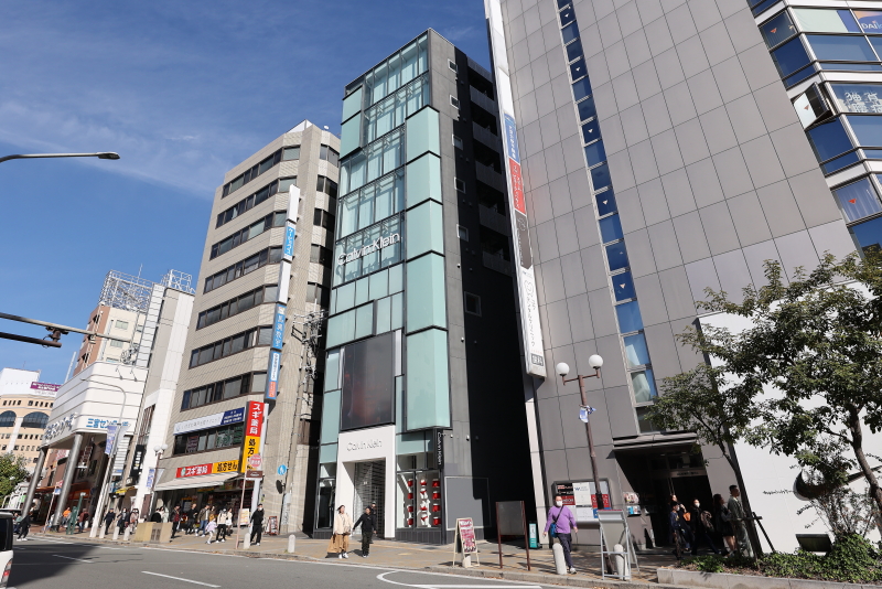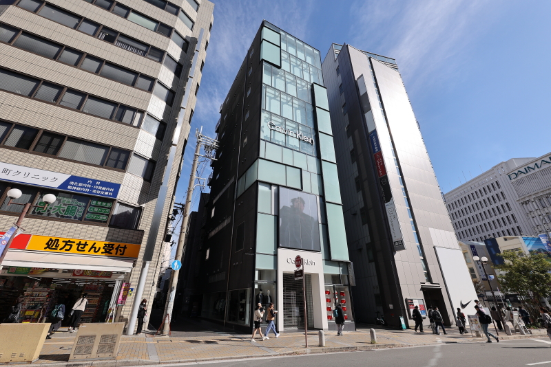 1-2階に本日オープンするのはCalvin Kline神戸店。路面店となるエントランス上の2階外壁中央に大型デジタルサイネージが設置され、都会的な外観で、鯉川筋に新たな賑わい生む拠点としての役割が期待されます。