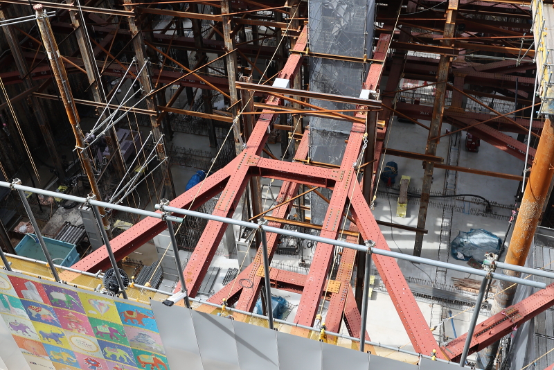地下3階の床にはコンクリートが打設され、柱の鉄筋の配筋が開始されている模様です。