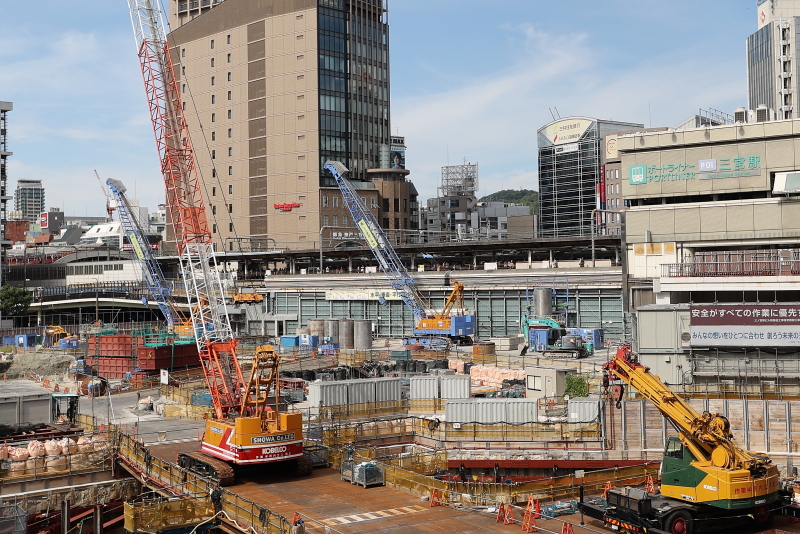 この駅ビル新築工事は順調に進行していますが、建築資材の高騰や建設業界の人手不足は、全国で行われている再開発に大きな影響を及ぼしています。札幌駅ビルや駅前のヨドバシHDの再開発ビルは規模を縮小していますし、東京・中野の再開発も白紙撤回。更に先週には福岡でJR九州が計画していた駅舎上空駅ビルが中止に追い込まれました。福岡市の進める博多コネクティッドの中核だったプロジェクトだけにこの中止は大きな波紋を広げかねません。神戸でもまだ着工に至っていない神戸市役所2号館や雲井通6丁目の大型プロジェクトへの影響が懸念されます。