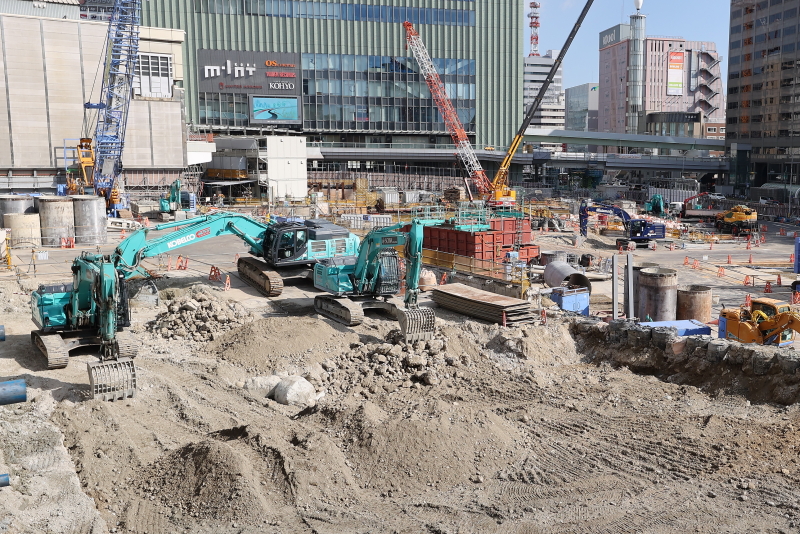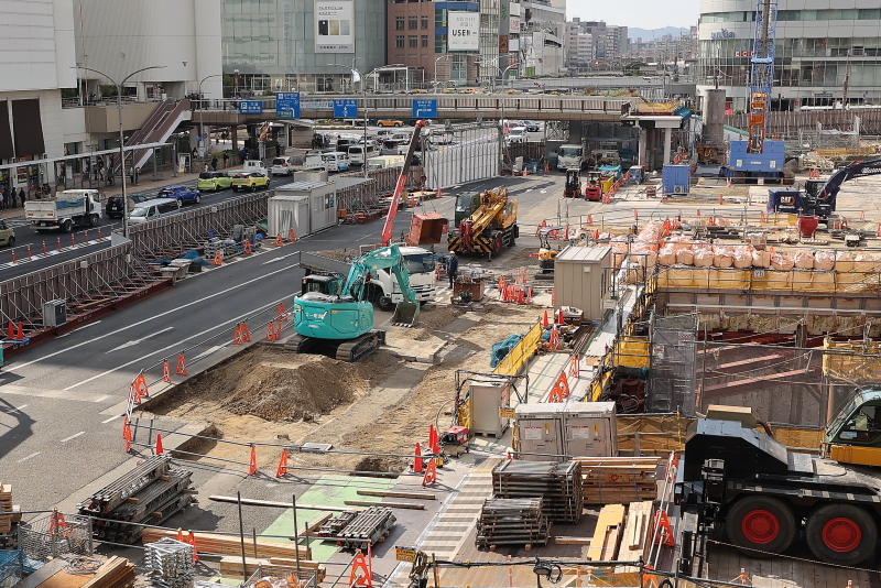 JR三ノ宮駅ビル開発準備工事 駅前広場内の設備撤去や掘削が進行 後発駅ビル開発のメリットを活かした内容を目指して欲しい