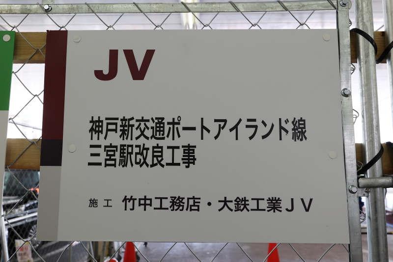 ポートライナー三宮駅舎の改良工事用のヤードです。この工事も駅ビルの施工を担っている竹中工務店と大鉄工業のJVで行っています。駅舎3階の西側に設けられ、駅ビルと直結する新改札口もあるので、この2社が施工するのが1番効率的です。工期は2028年3月末となっており、駅ビル完成よりも1年早く、まずは東側への駅舎拡大を先行する事になりそうです。