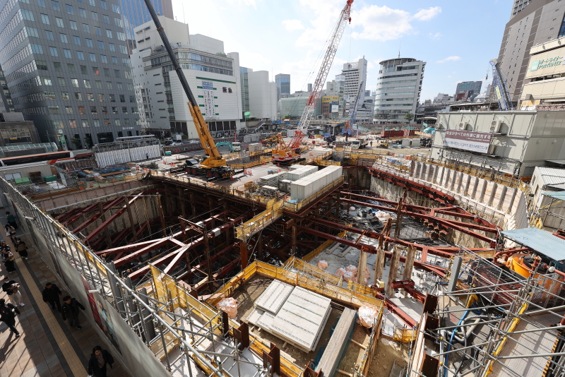 人の広場の地下の躯体工事も順調に進行しています。広場の地下工事がここまで大規模に進行するのは予想していませんでした。